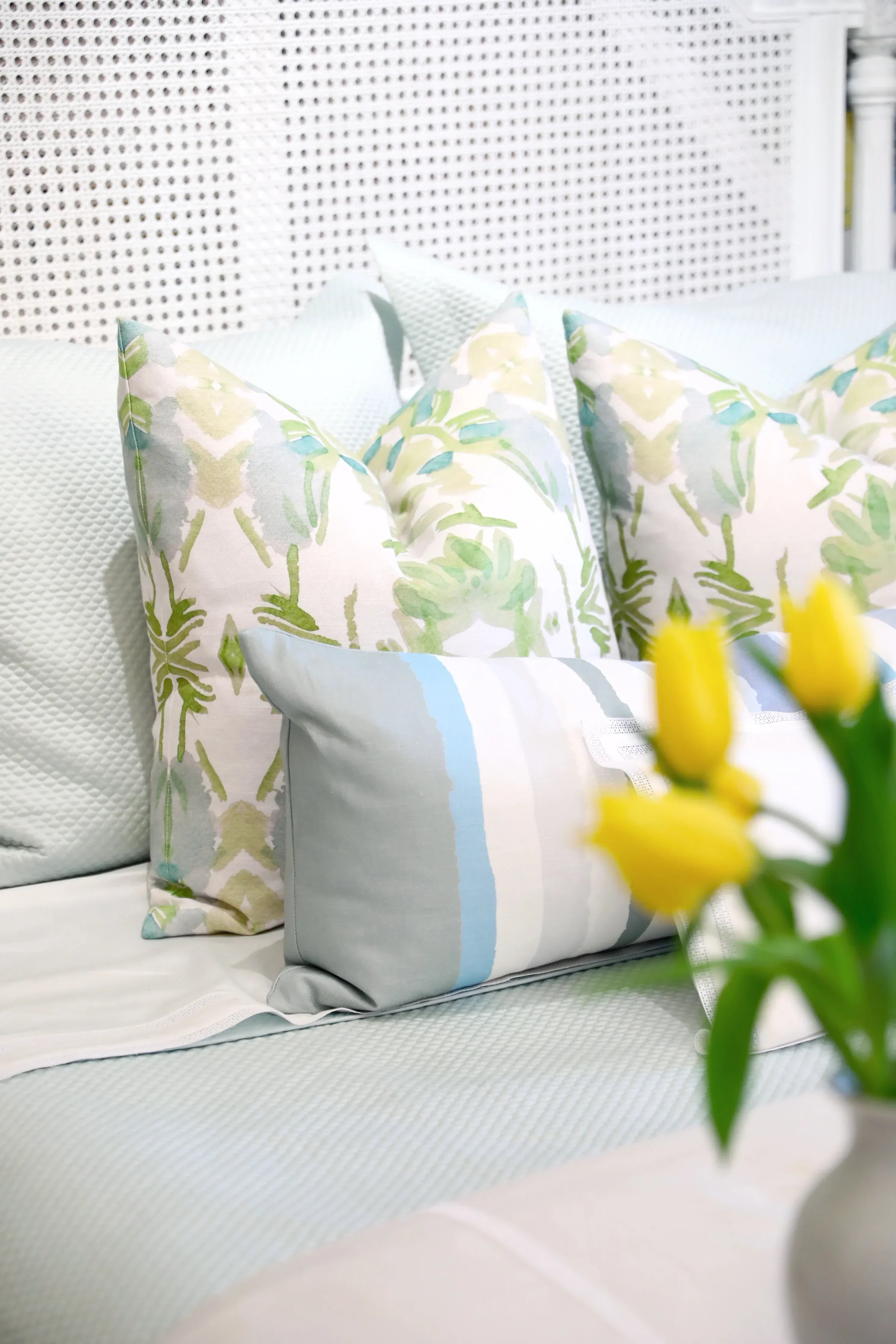 Wildflowers I White & Apple Green Luxury Pillow Large Repeat