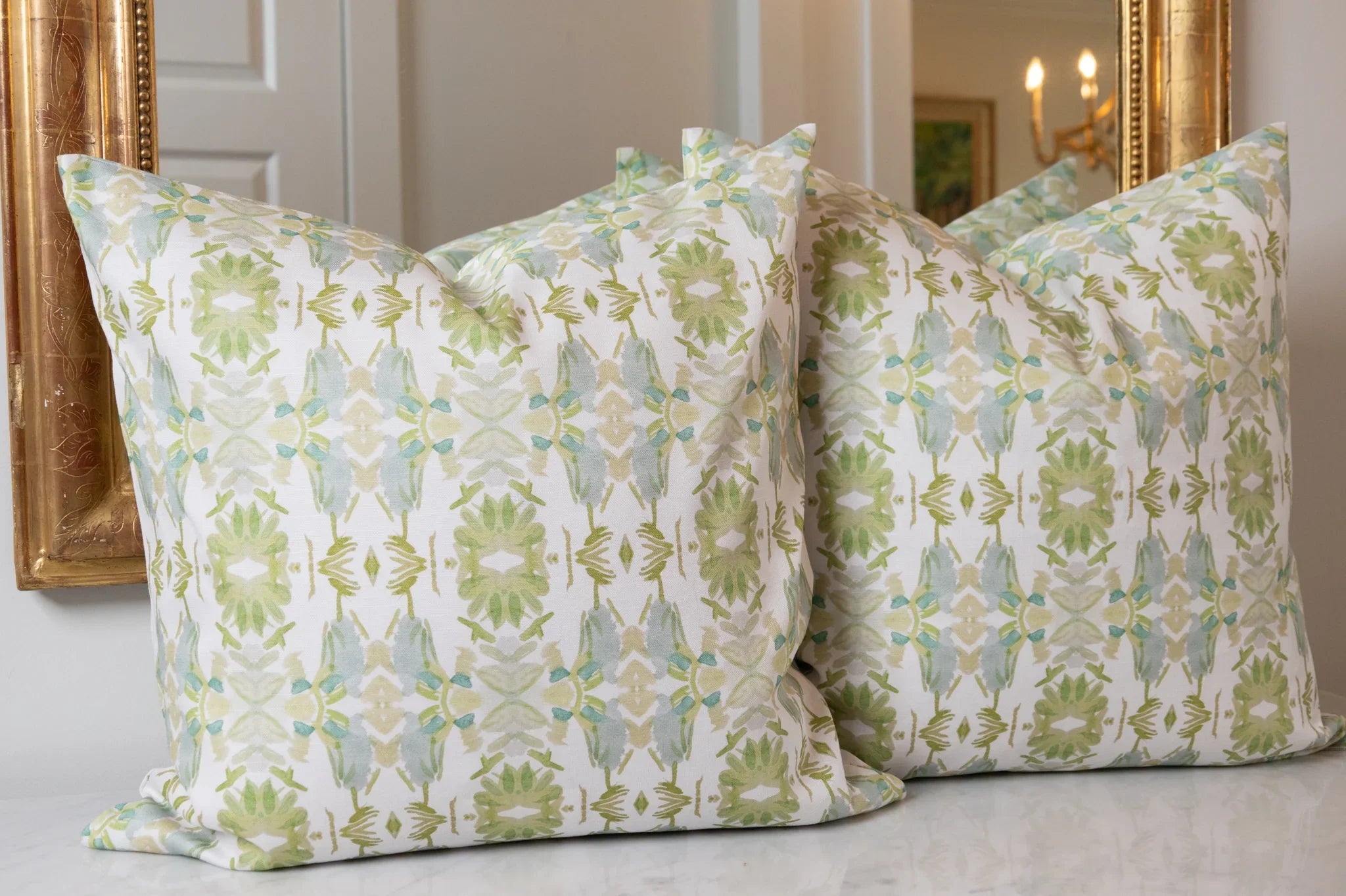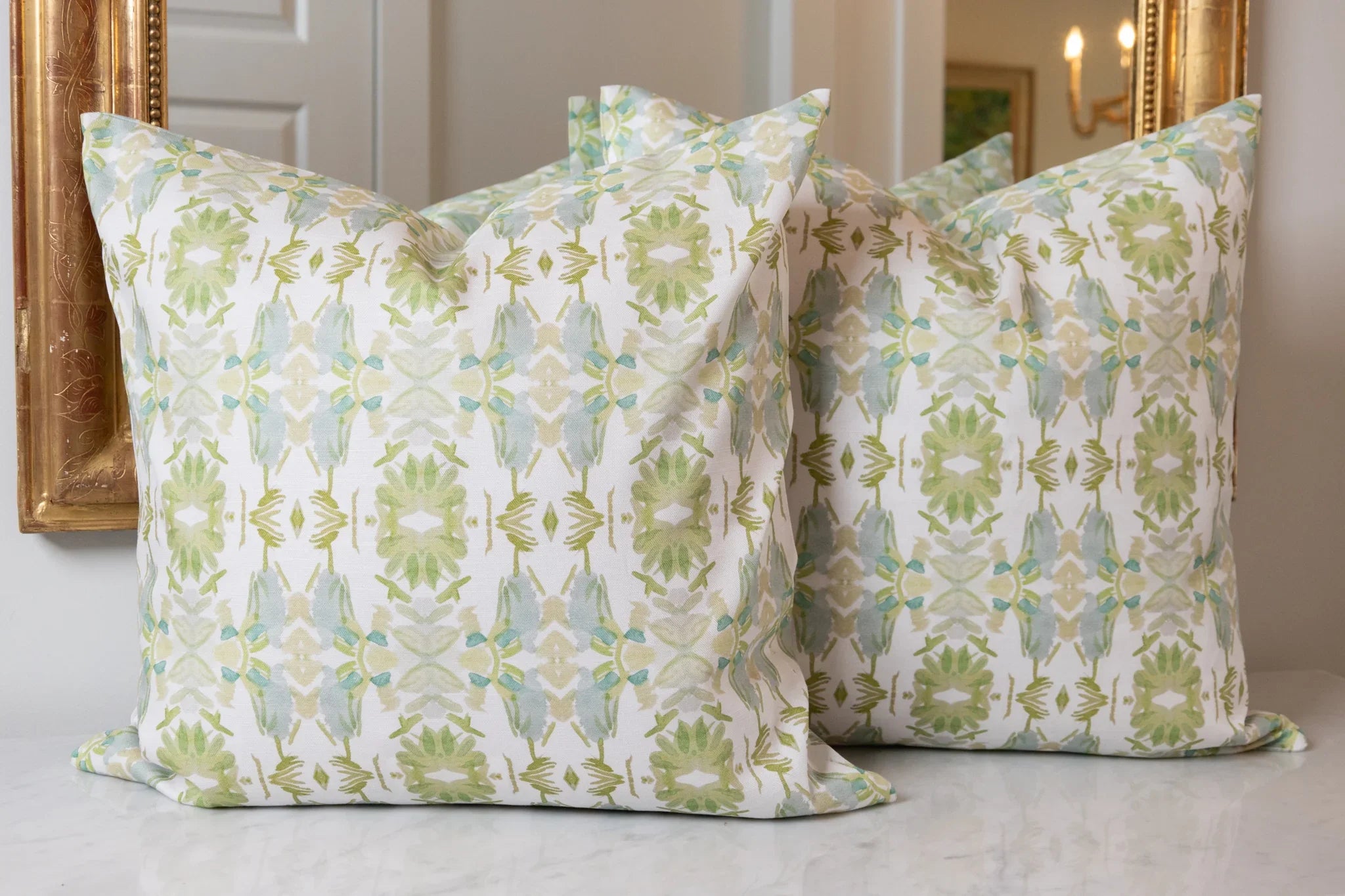 Wildflowers I White & Apple Green Luxury Pillow Small Repeat