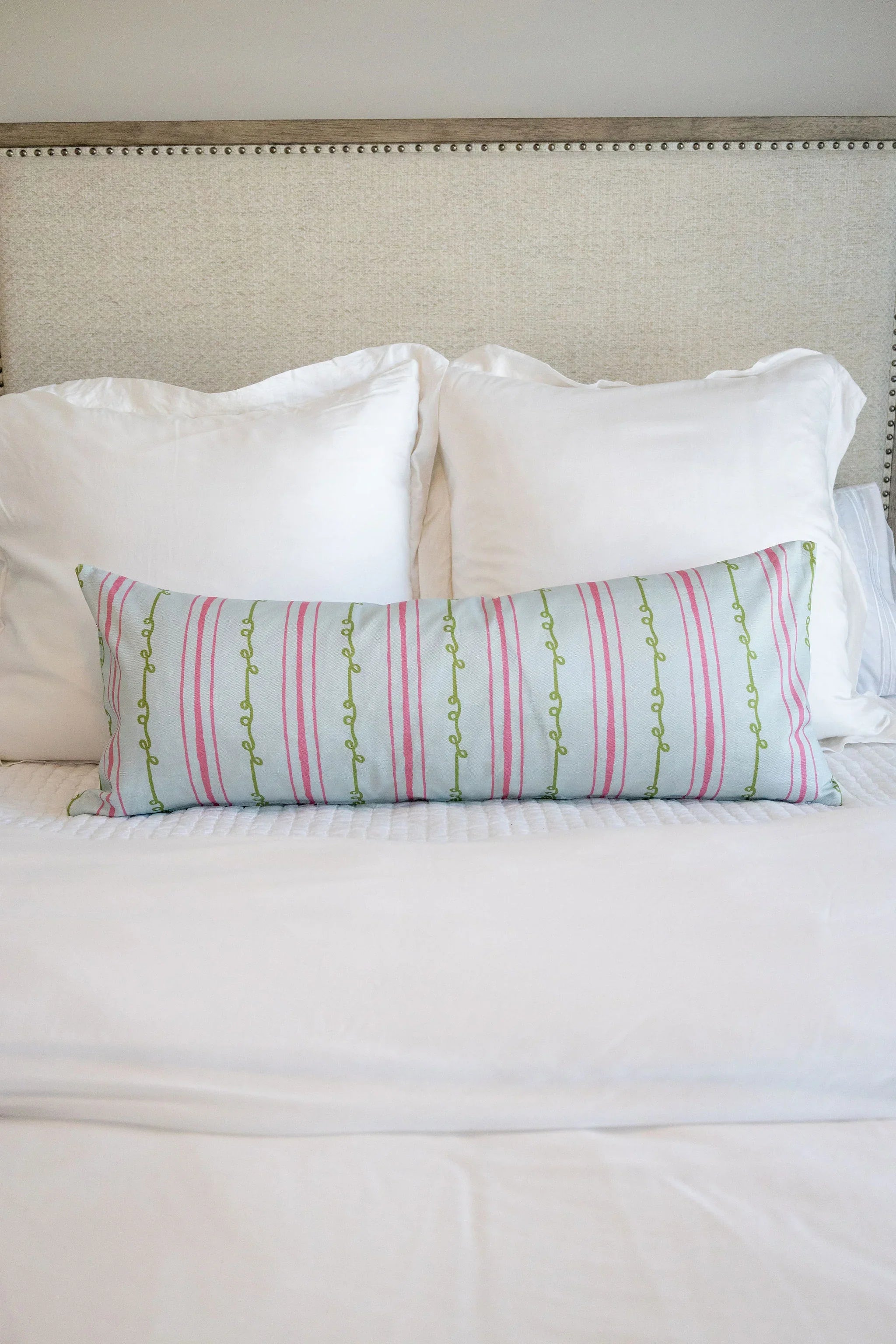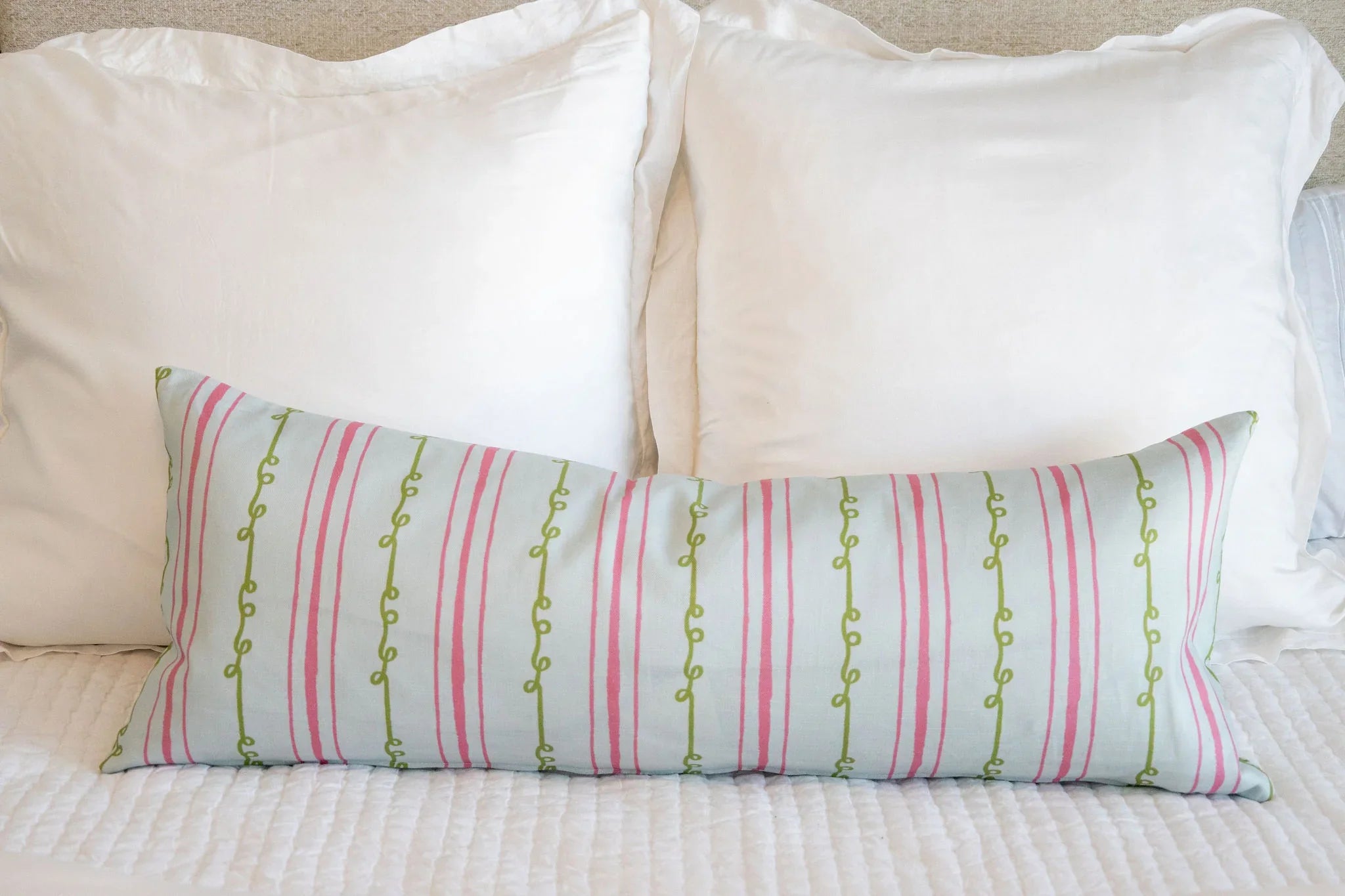 Sister Stripe Light Blue, Green & Pink Luxury Bolster Pillow