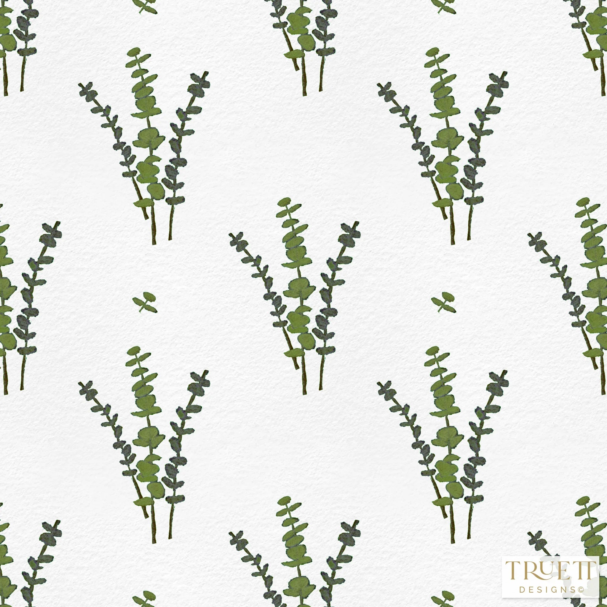 Eucalyptus White & Olive Greens Luxury Wallpaper