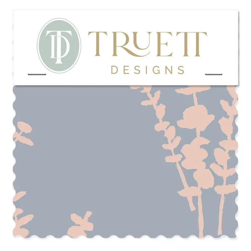Eucalyptus Blue & Pink Small Repeat Luxury Fabric by the Yard