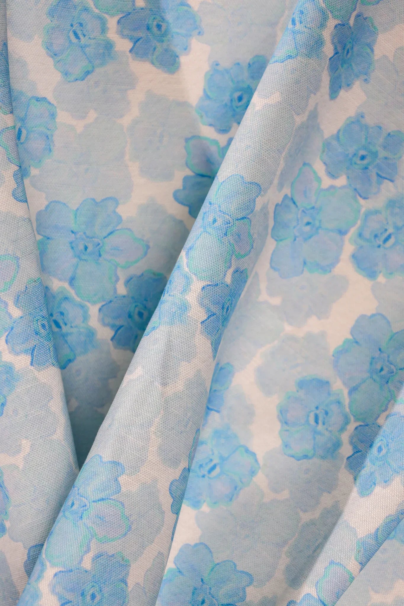 Trois Fleurs Bleue, Blue Floral Luxury Fabric