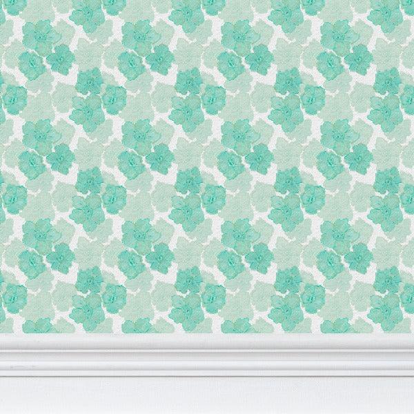 Trois Fleurs Verte, Green Floral Luxury Wallpaper